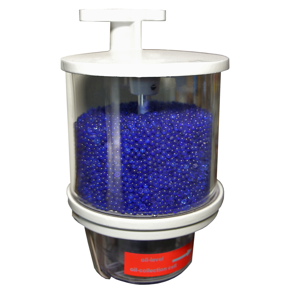 پر شده و به واسطه وجود این مواد درون خود از ورود آلودگی و رطوبت محیط به درون ترانسفورماتور جلوگیری خواهد کرد. دستگاه رطوبت گیر دارای یک محفظه شیشه ای مخصوص بلور های رطوبت گیر می باشد. بلور های رطوبت گیر یا سیلیکاژل در حالت خشک آبی رنگ بوده و به مرور زمان با جذب رطوبت به رنگ صورتی تغییر